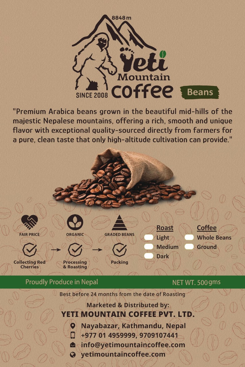 Yeti Mountain Coffee is a specialty coffee brand that showcases the rich flavors of Nepal’s high-altitude beans. Cultivated in pristine mountain environments, these beans are celebrated for their medium body, floral aroma, and subtle notes of citrus and spice.